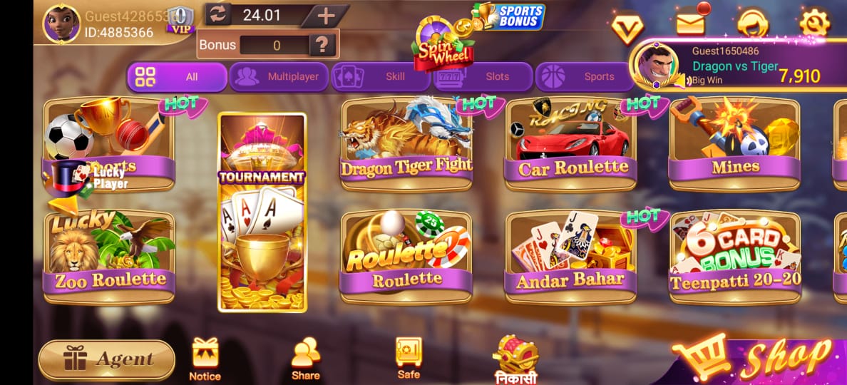 Special Games: Jhandi Munda, Car Roulette, aur 7 Up Down.